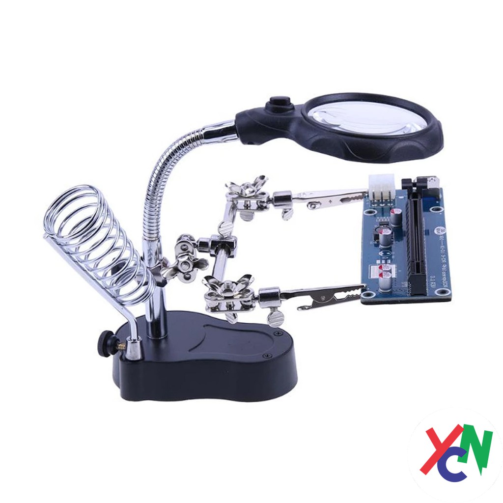 Giá đỡ mỏ hàn kèm kính lúp MG16126 có kẹp giữ mạch và đèn led