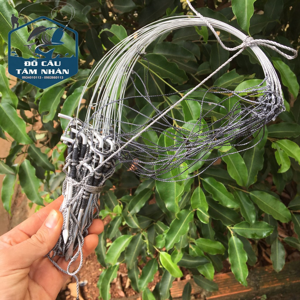 Mẫu giò đón bẫy gà rừng chân thép, cáp se 4 màu cỏ khô, khoen inox, dù siêu bền bộ 20 chân
