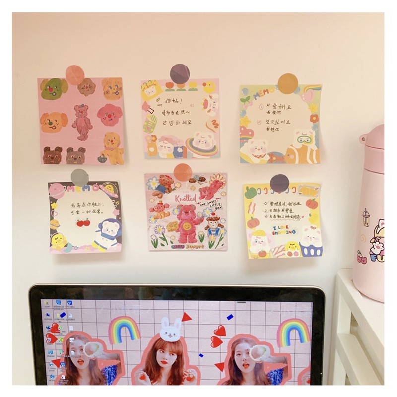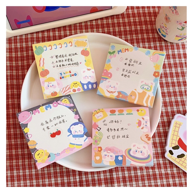Giấy note cute/Set giấy note 100 tờ ghi chú hình gấu dễ thương trang trí sổ bullet journal Hàn Quốc Tẻn Tẻn