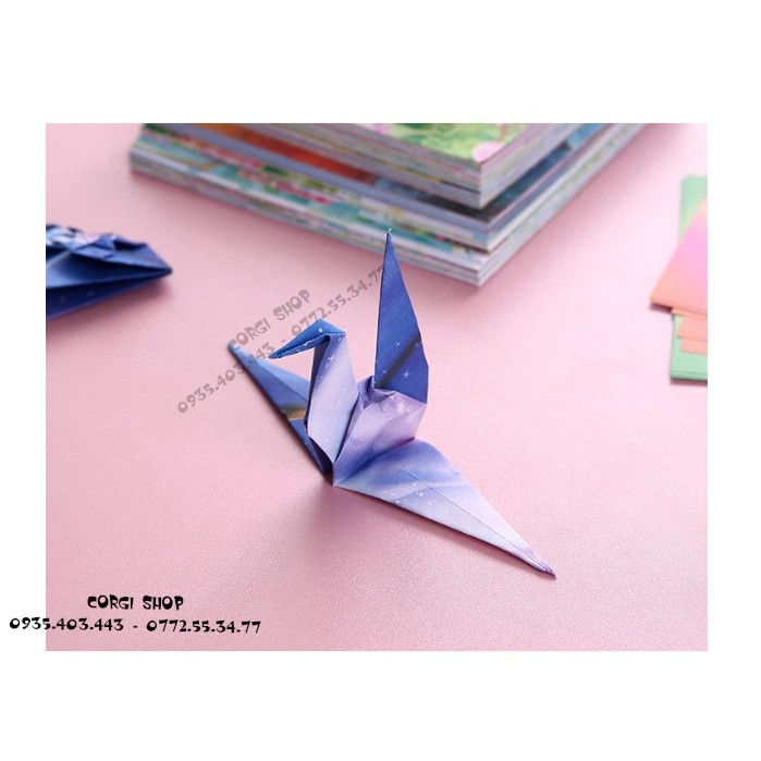 Giấy thủ công origami hình vuông nhiều mẫu, nhiều màu - Giấy xếp hạc giấy họa tiết cung hoàng đạo, khủng long, hoa