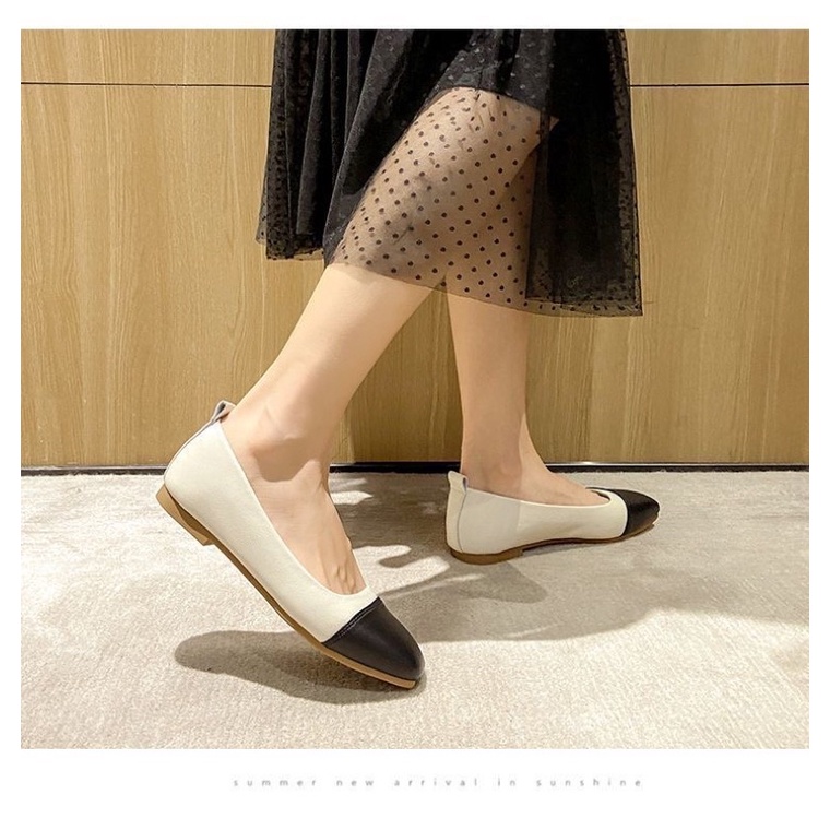 Giầy bệt đế thấp hai màu kem, đen nhẹ nhàng, êm chân, dễ đi thời trang kiểu Hàn Quốc hiện đại Ulzzangshop520