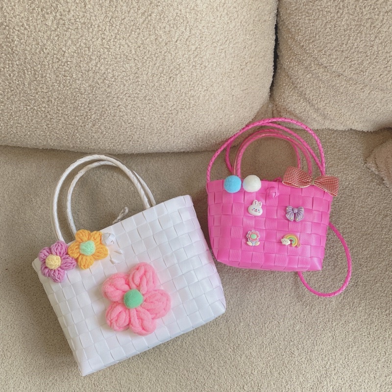 Túi nhựa, giỏ nhựa đan đủ màu sắc phối nơ xinh thời trang đi biển hè 2023-Tiệm Cói Cô Lê