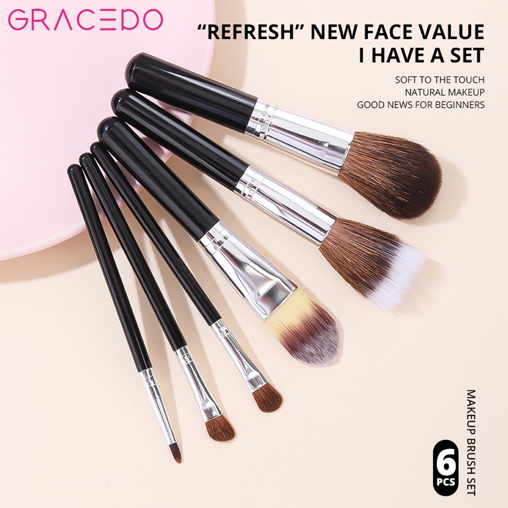 GRACEDO 6 Cái Bộ Cọ Trang Điểm Chuyên Nghiệp Cầm Tay Kèm Túi Trang Điểm