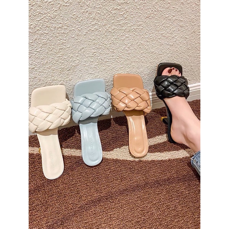 Guốc lê nữ quai ngang dây bện phồng gót cao 5cm