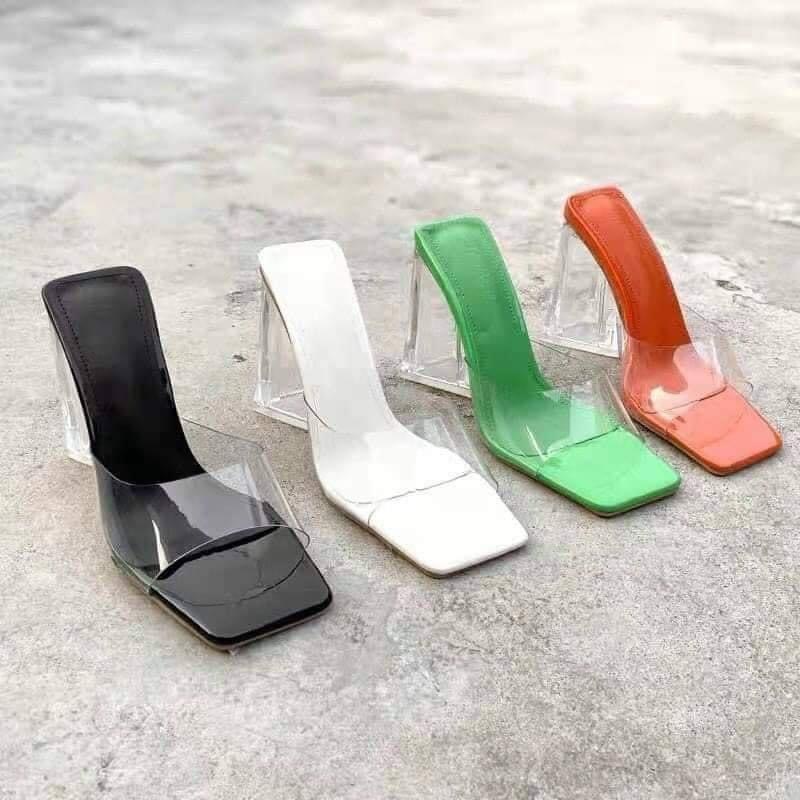 Guốc nữ mũi vuông quai ngang gót tam giác trong suốt cao 7 phân – TiNy Shoes G035