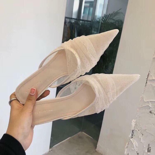 Giầy cao gót nữ Enako Tp13753 - Mũi nhọn gắn nơ gót cao 7,5cm