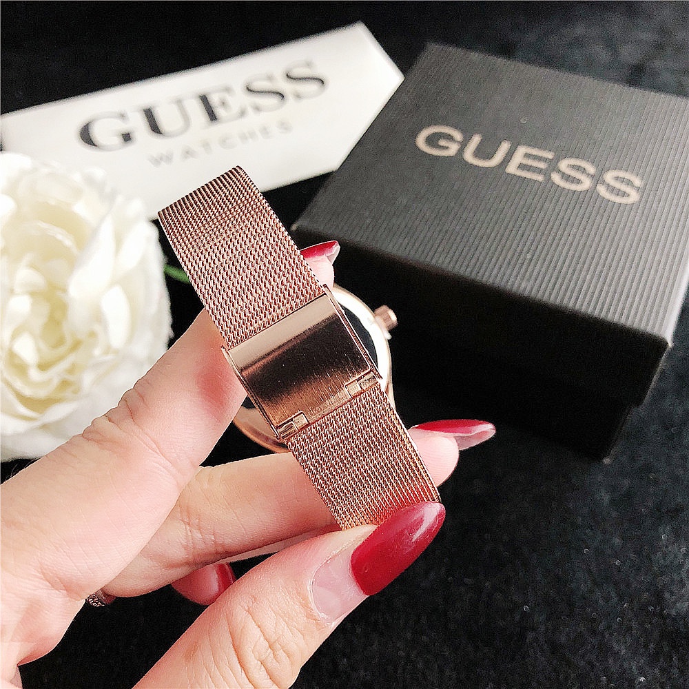 Guess Graffiti Hoa Hồng Vàng Lưới Thép Không Gỉ Dây Đeo Đồng Hồ Nữ Đồng Hồ Thời Trang Thường Ngày