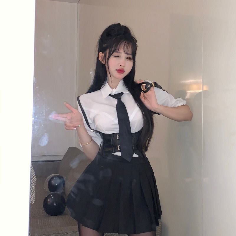 Hàng Có Sẵn Bộ Đồng Phục Xếp Ly Sát Nách Dáng Ôm Phong Cách Preppy Pháp Quyến Rũ Cho Nữ