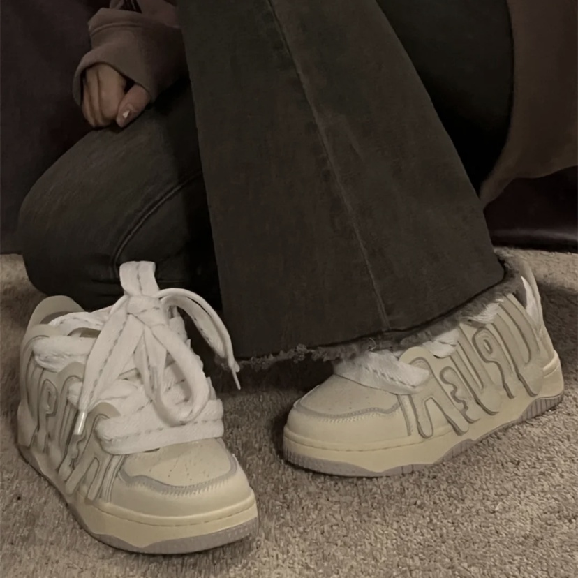 Giày Bánh Mì Kuromi Niche Giày Thể Thao In Chữ Phong Cách Retro Giản Dị Dành Cho Cặp Đôi