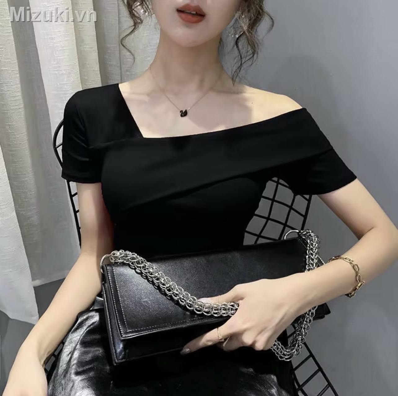 Hàng Mới Về - Áo Thun Nữ, Áo Kiểu Nữ, Áo Lệch Vai, Vải Gân Co Giãn Tốt Ôm Body mềm mịn mát phối đồ siêu xinh đi cafe đi chơi đều xinh