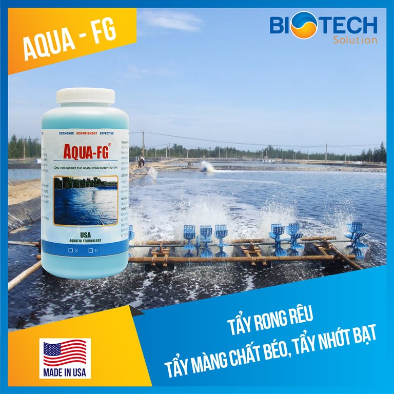 Hàng Mỹ - Vi Sinh Tẩy Nhớt Bạt, Màng Chất Béo, Tẩy Rong Rêu Ao Tôm, cắt dứt tảo lam, tảo đỏ - Aqua FG – Chai 1 Lít