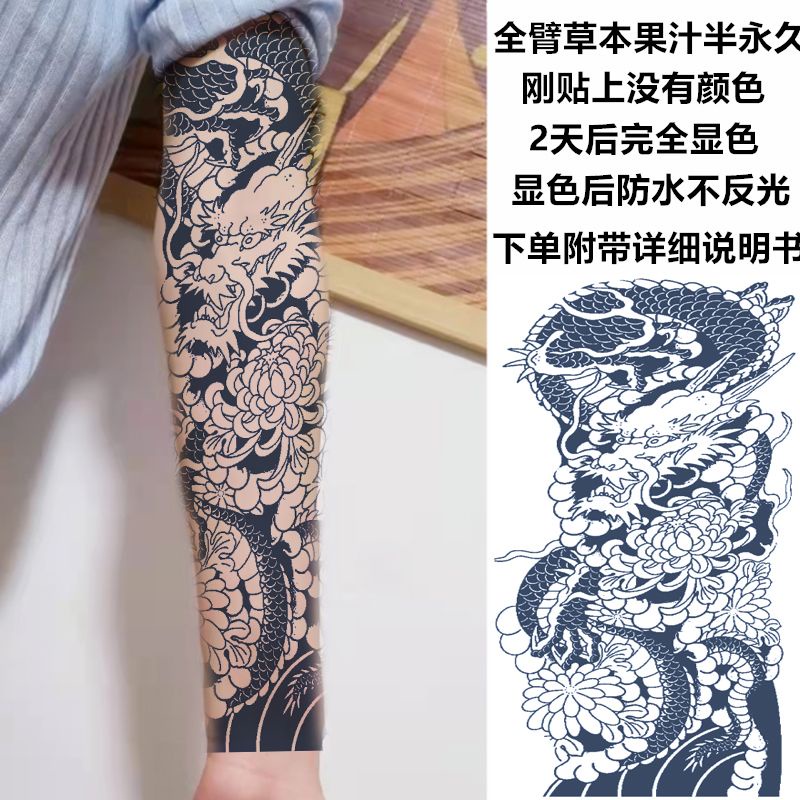 Hình Xăm Dán Cánh Tay Họa Tiết Hoa Và Rồng Truyền Thống Trung Quốc 15 Ngày Chống Nước Lâu Trôi
