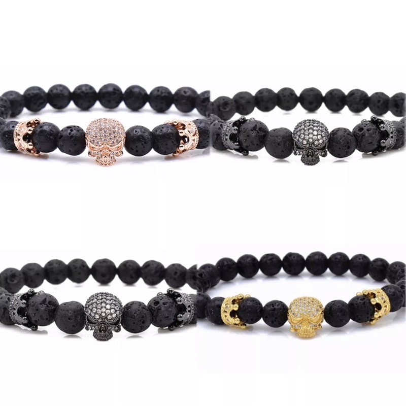 Hạt Đầu Lâu - Charm Phụ Kiện Vòng Tay Phong Thuỷ Trang Sức Nam, Nữ Kim Loại Đồng Zircon