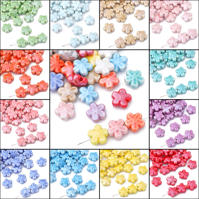 Hạt gốm xỏ làm vòng cổ/vòng tay thủ công hình bông hoa nhiều màu sắc DIY