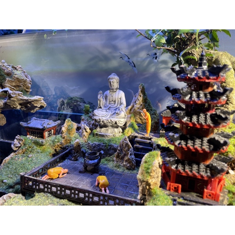 Chú tiểu chắp tay đứng bái in 3D phối màu độc đáo trang trí tiểu cảnh, non bộ, hồ cá bán cạn