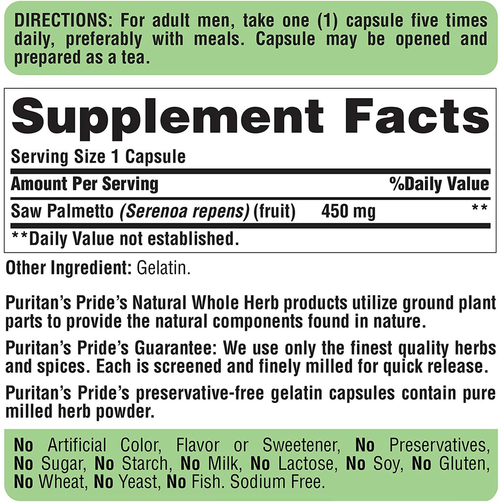 Hỗ trợ đường tiết niệu và tuyến tiền liệt Saw Palmetto 450 mg chai 100 viên Puritan’s Pride từ mỹ