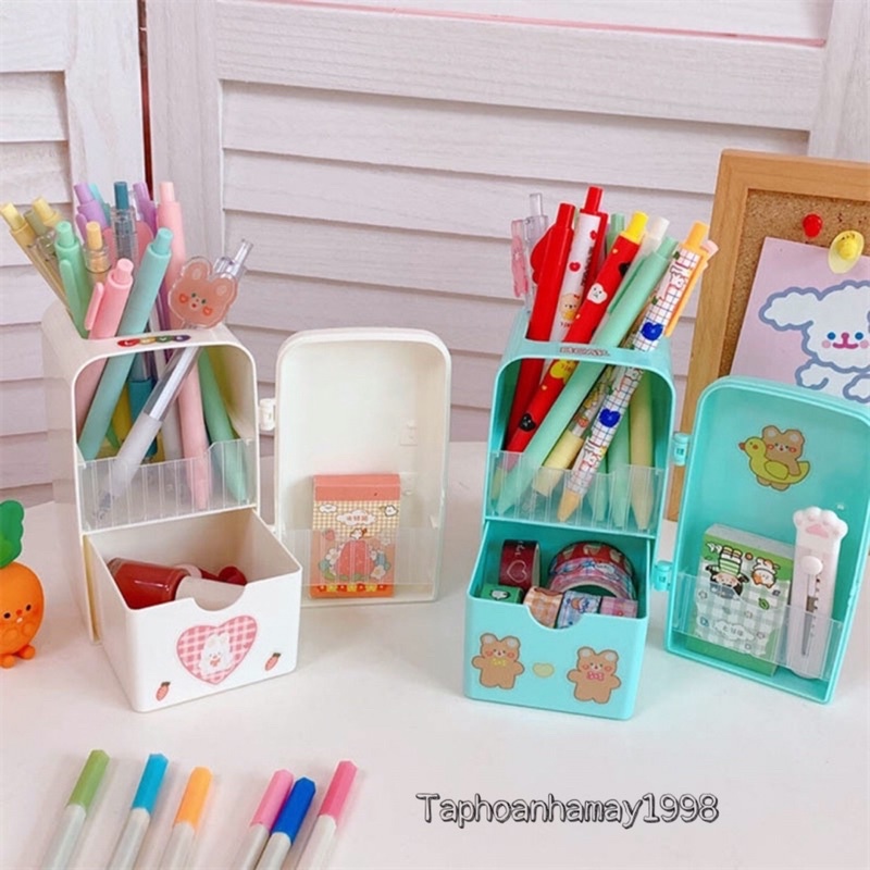 Hộp Đựng Bút, Mĩ Phẩm, Cọ Trang Điểm 4 Tầng Trong Suốt DIY Phong Cách Nhật Bản P004