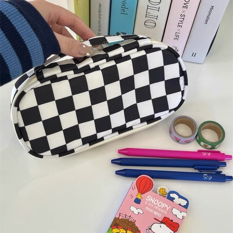 Hộp Đựng Bút Họa Tiết Kẻ Ô Trắng Đen Đơn Giản Phong Cách Ins Cho Học Sinh