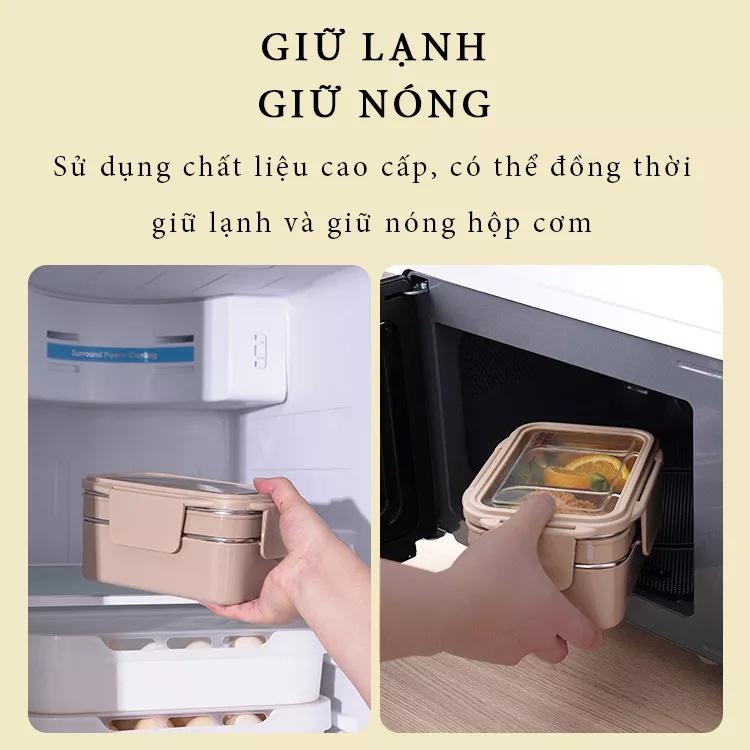 Hộp đựng cơm giữ nhiệt 2 tầng 3 ngăn , hộp cơm văn phòng,hộp Đựng xơm văn phòng ruột INOX cao cấp,dùng được vi sóng