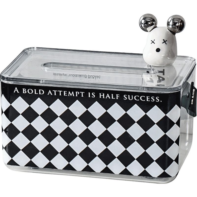 Hộp Đựng Khăn Giấy Đa Năng Bằng Nhựa Họa Tiết Kẻ Sọc Trắng Đen Hình Gấu Cho Phòng Khách