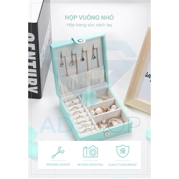 Hộp đựng trang sức nhẫn mini da cao cấp 3 tầng đựng đồ nữ trang sang trọng