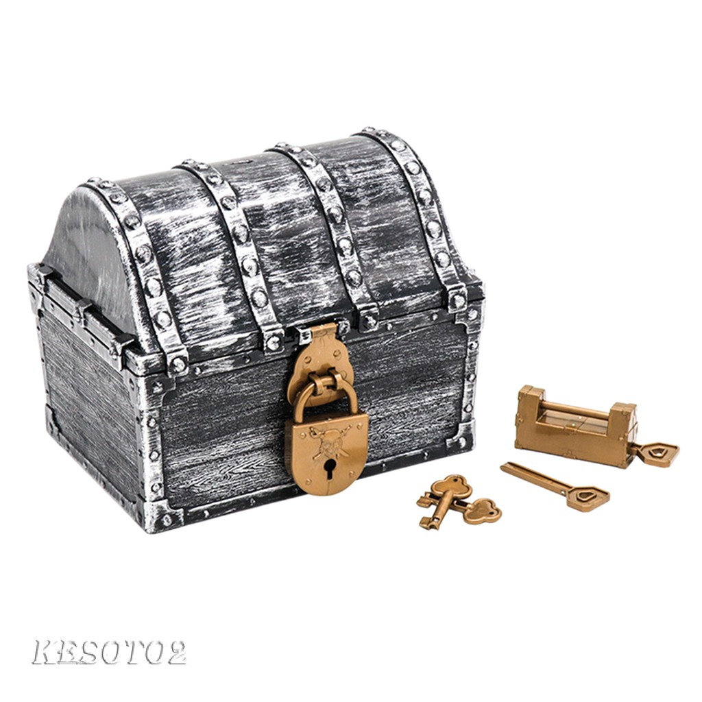 Description: Kids pirate treasure chest adopts high - tech gold plating technology without dropping paint, high - quality plastic material is safe and healthy. Great toy for kids, ''Find the treasure'' games . Perfect party favor prop decoration on any pirate-themed party! The treasure chest also can be small toy storage for kids,raise a cherish of loved toys. Each treasure chest comes with 2 locks and 4 keys. Specification: Material: Plastic Shape: rectangle Style: Vintage Style Weight: 205g Treasure Chest Size: approx. 17x14x13.5cm/6.69x5.51x5.31inch.(LxWxH) Package Includes: 1 Piece Pirate Chest 2 Pieces Locks 4 Pieces Keys Note: Please allow 1-3mm measuring deviation due to manual measurement. Due to the different monitor and light effect,the actual color of the item might be slightly different from the color showed on the pictures.Thank you!