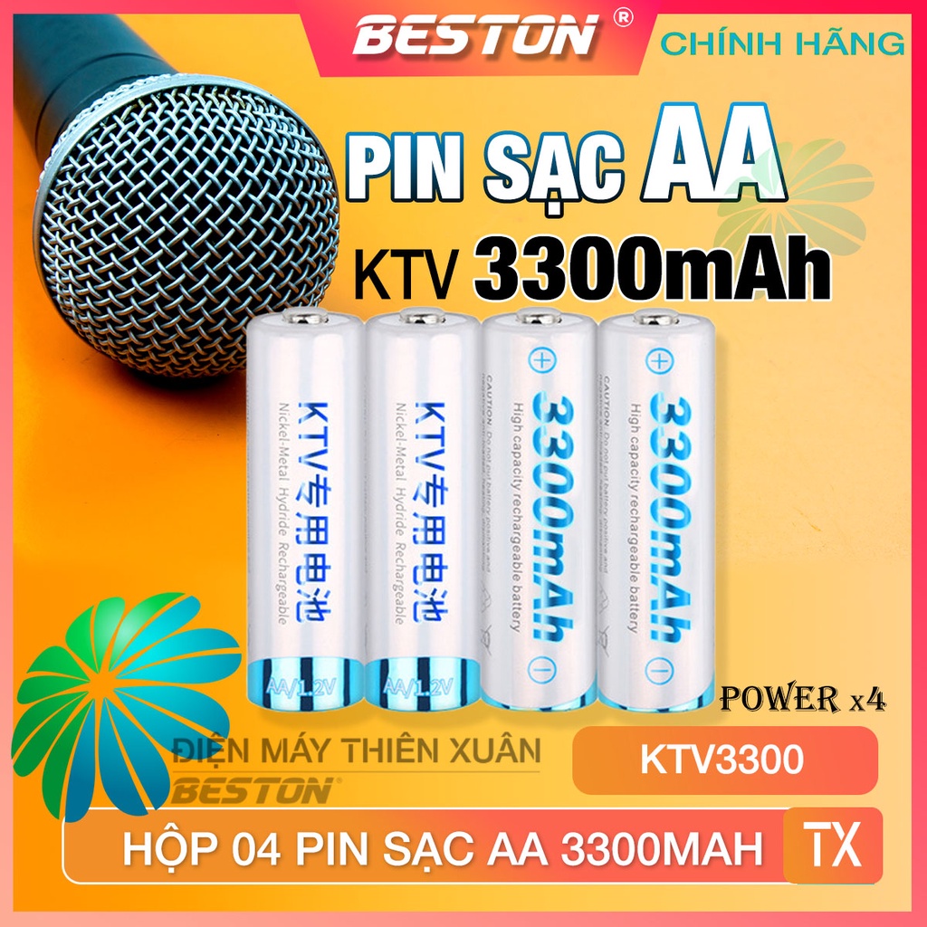 Hộp 04 Pin Sạc AA Beston KTV3300mAh Cho Micro Karaoke loa, đồ chơi trẻ em, đồng hồ, thiết bị điện tử, đèn flash, máy ảnh