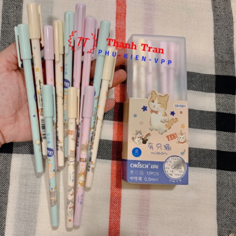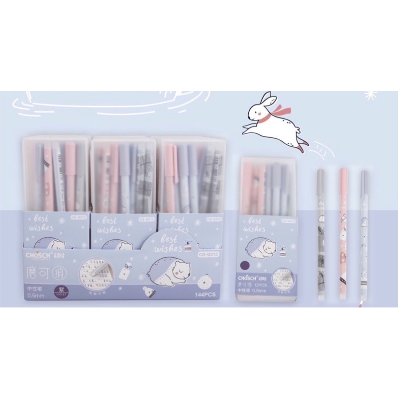 Hộp 12 cây bút gel xoá được CHOSCH mực xanh/tím cao cấp