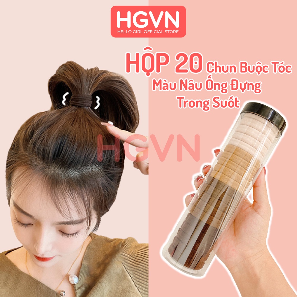 HỘP 20 Chun Buộc Tóc HGVN Nhiều Màu Sắc, Dây Buộc Tóc Trơn Kèm Ông Đựng Trong Suốt