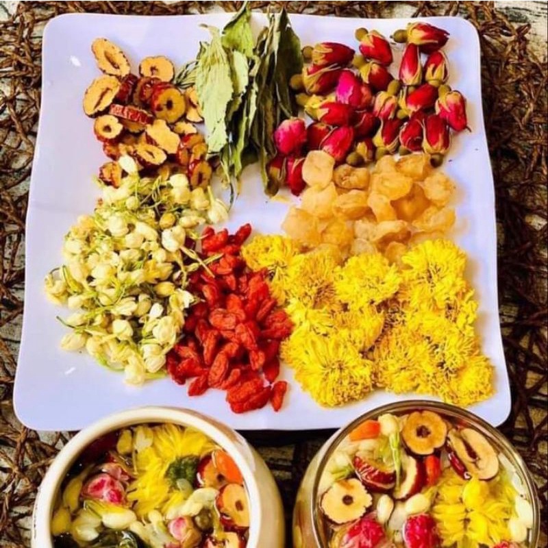 TRÀ HOA BẢY VỊ .thành phần gồm. long nhãn.kỉ tử .nụ nhài .cỏ ngọt. hoa cúc. nụ hồng. táo đỏ.. ♥️☘️☘️☘️ CÔNG DỤNG.giúp thanh lọc cơ thể. giảm stress . cân bằng nội tiết tố .ngủ ngon.. 🌹🌹🌹🌹 CÁCH DÙNG.cho trà ra ly châm nước đầu đổ đi rồi thêm 180ml nước nóng khoảng 5phut thêm thìa mật ong cho vừa vị là có thể dùng ạ. #trahoathaomoc #trahoacuc #trahoabayvi #traduongnhan