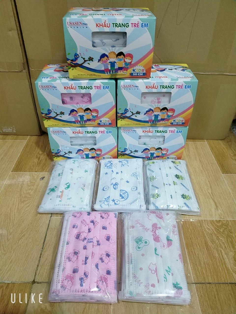 Hộp 50 Cái Khẩu Trang Y Tế Trẻ Em USASEN Kháng khuẩn cho bé từ 4- 11 tuổi