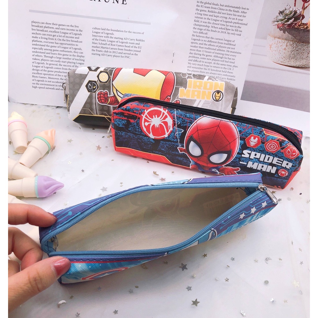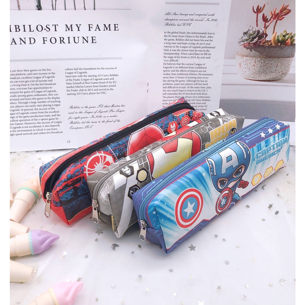 Hộp bút bằng vải họa tiết siêu nhân/ người nhện/ người sắt/ đội trưởng mỹ Đồ dùng học tập Đồ dùng văn phòng phẩm