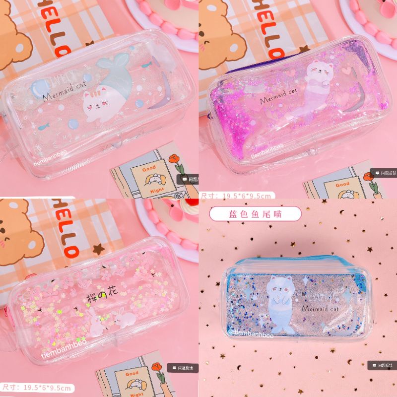 Hộp bút/ túi bút nhũ trong suốt dễ thương cỡ lớn nhiều mẫu