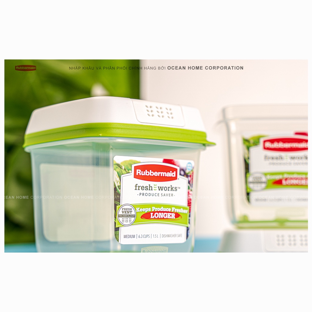 Hộp bảo quản rau củ quả RUBBERMAID có nắp màu xanh bằng nhựa nguyên sinh cao cấp loại 1,5L - Chính Hãng từ Mỹ