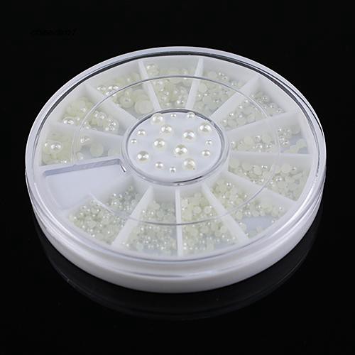 Hộp Bánh Xe Đính Ngọc Trai Giả Màu Trắng 3 Kích Cỡ Trang Trí Móng Tay Nghệ Thuật DIY