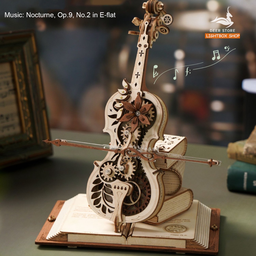 Hộp nhạc Robotime ROKR Magic Cello Đồ chơi xếp hình bằng gỗ 3D AMK63 | Magic Cello Mechanical Music Box Bản Tiếng Anh