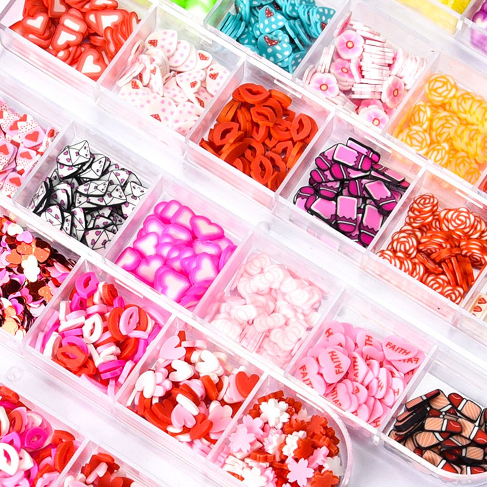 Hộp Phụ Kiện Trang Trí Móng Tay Nghệ Thuật Acrylic Nhiều Màu Hình Trái Tim 3D 12 Kiểu