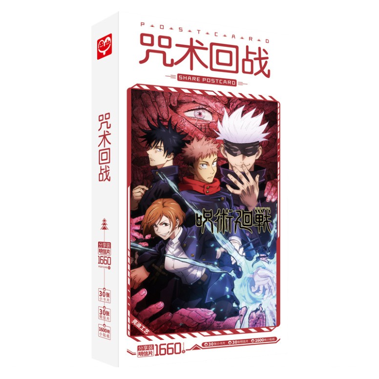 Hộp postcard Jujutsu Kaisen - Chú Thuật Hồi Chiến - postcard, lomocard, sticker, bookmark, huy hiệu, móc khóa, ... - mỗi hộp postcard bao gồm : 30 postcard + 30 lomocard + 120 sticker #hoppostcard #postcard #jujutsukaisen #chuthuathoichien #satorugojo #sugurugeto #su