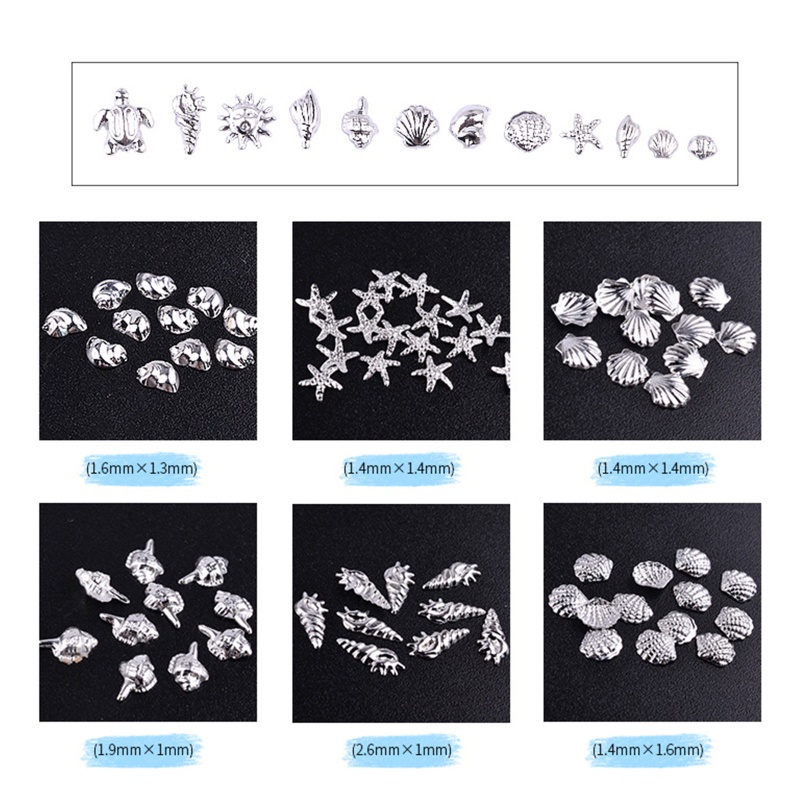 Đinh tán kim loại Dòng biển Vỏ hình Sao biển Hình dạng hợp kim Móng tay Nghệ thuật 3D Trang trí Ngôi sao Sao biển Các tính năng: Nhiều mẫu sống động hơn: Bộ móng tay mùa hè này bao gồm các mẫu lấp lánh hoa văn sống động như vỏ sò, cá cảnh, tôm thạch, v.v. để tạo thêm