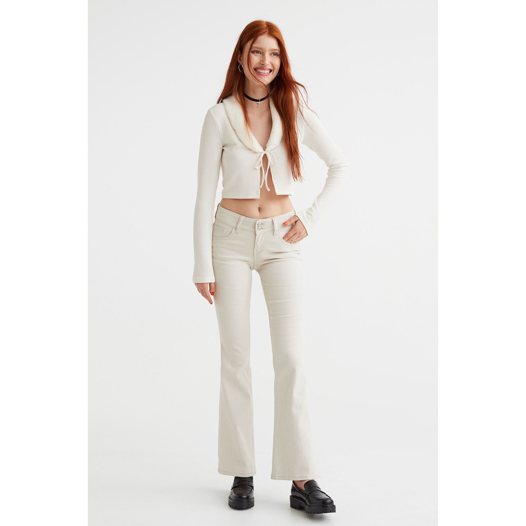 H&M Đức - Áo len mỏng tay dài thắt dây phối lông cổ màu trắng tím sale auth cao cấp chính hãng có sẵn 1091715002