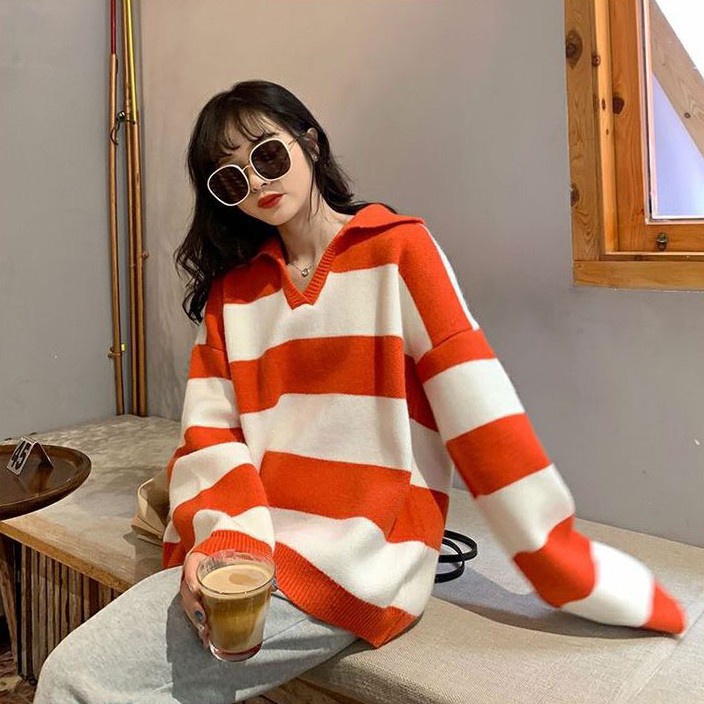 Happy-store ❤️ Áo Sweater Tay Dài Cổ Bẻ Phong Cách Retro Hàn Quốc Thời Trang Cho Nữ