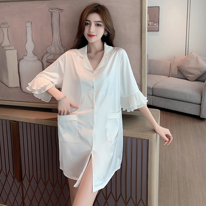 Herbe's Secret Bộ Đồ Ngủ Áo Sơ Mi Voan Phong Cách Gợi Cảm Cho Nữ Mặc Nhà