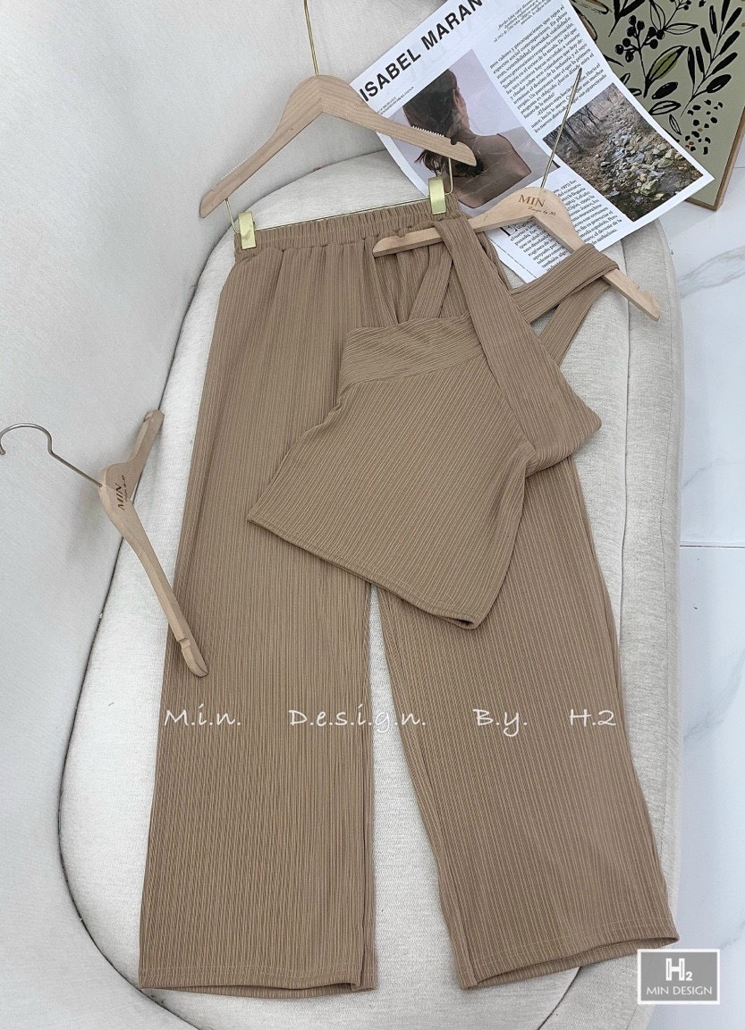 HOÀN TIỀN 15% - Đồ Bộ Nữ Set Bộ Nữ Chất Thun Gân Áo Ôm Croptop Cổ Chéo & Quần Dài Ống Suông Mặc Dạo Phố Rất Thoải Mái