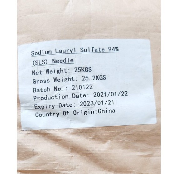 -Sodium Lauryl Sulfate là một chất bột có màu trắng hoặc màu vàng, khi ở dạng lỏng nó có màu vàng nhạt. Nó là một chất bề mặt dùng để vệ sinh đa năng do tính chất tạo bọt tốt. Đây là một chất có nguồn gốc từ thiên nhiên, chủ yếu là từ dầu dừa, dầu cọ. -Do kích thước phân tử của chất này lớn nên nó không thể xâm nhập vào da hay màng mucuos. Nó tạo nhiều bọt mà không gây kích ứng cho da. Chính vì vậy nên SLS là một chất an toàn cho da. Nhờ những đặc tính đó mà nó được hay lựa chọn để thêm vào thành phần tạo dầu gội, mỹ phẩm, kem dưỡng da, và các loại sản phẩm tẩy rửa khác. -Sodium Lauryl Sulfate không chỉ giới hạn trong việc làm sạch mà nó còn xuất hiện trong vô số ngành khác. Nó có trong chất tẩy trang – một loại chất dùng sau khi trang điểm, lấy đi các mẫu phấn son còn sót lại trong các lỗ chân lông, giúp cho da sạch thoáng sạch . Ngoài ra , S L S còn được dùng để sản xuất kem cạo râu, thuốc nhuộm tóc, dầu gội dành cho thú nuôi … Công năng đặc biệt của SLS chính là hợp chất bề mặt làm sạch, tạo độ ẩm, nhũ hóa hoặc hòa tan các bã nhờn để làm sạch tận sâu và loại bỏ chúng tuyệt đối. Đồng thời hợp chất này cũng là một trong những thành phần quan trọng trong công nghệ tạo bọt giúp dễ dàng khử sạch bụi bẩn, vi khuẩn trên da. Với công dụng làm sạch như trên, SLS thường là lựa chọn tối ưu dành cho những sản phẩm làm đẹp hoặc chăm sóc cơ thể. Trong ngành dệt, đây là một chất có chức năng chính trong việc làm ẩm và tẩy rửa. Sodium Lauryl Sulfate – SLS được ứng dụng trong ngành nghề : Dầu gội, Hóa mỹ phẩm, Tẩy rửa … Thời hạn sử dụng Thời hạn sử dụng: 2 năm kể từ ngày sản xuất Bảo quản nơi khô ráo thoáng mát. Tránh xa tầm tay trẻ em