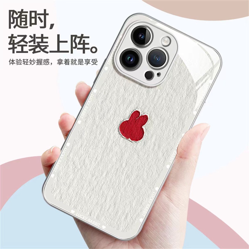 Hoạt Hình Ốp Điện Thoại Mặt Kính In Hình Đầu Thỏ Cho iphone 14promax 13 12 xs11 xr 7 8plus 15promax