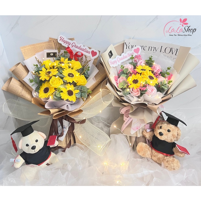 SIÊU RẺ 💥 Quà tặng tốt nghiệp bó hoa hướng dương sáp kèm gấu xốp dễ thương