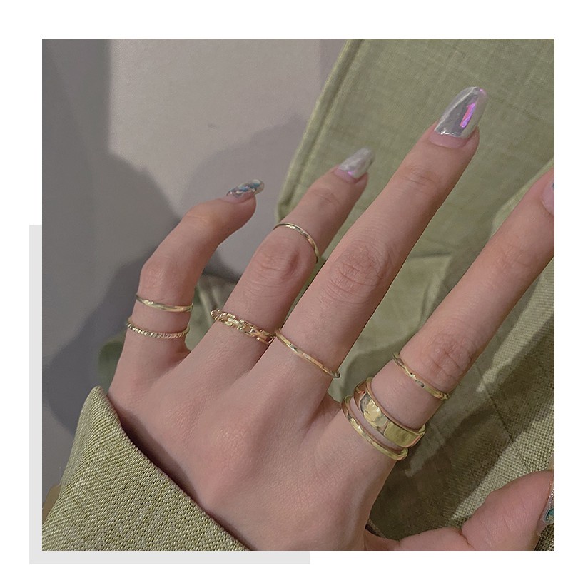 IF YOU Bộ 8 nhẫn hợp kim màu vàng/ bạc phong cách Hàn Quốc