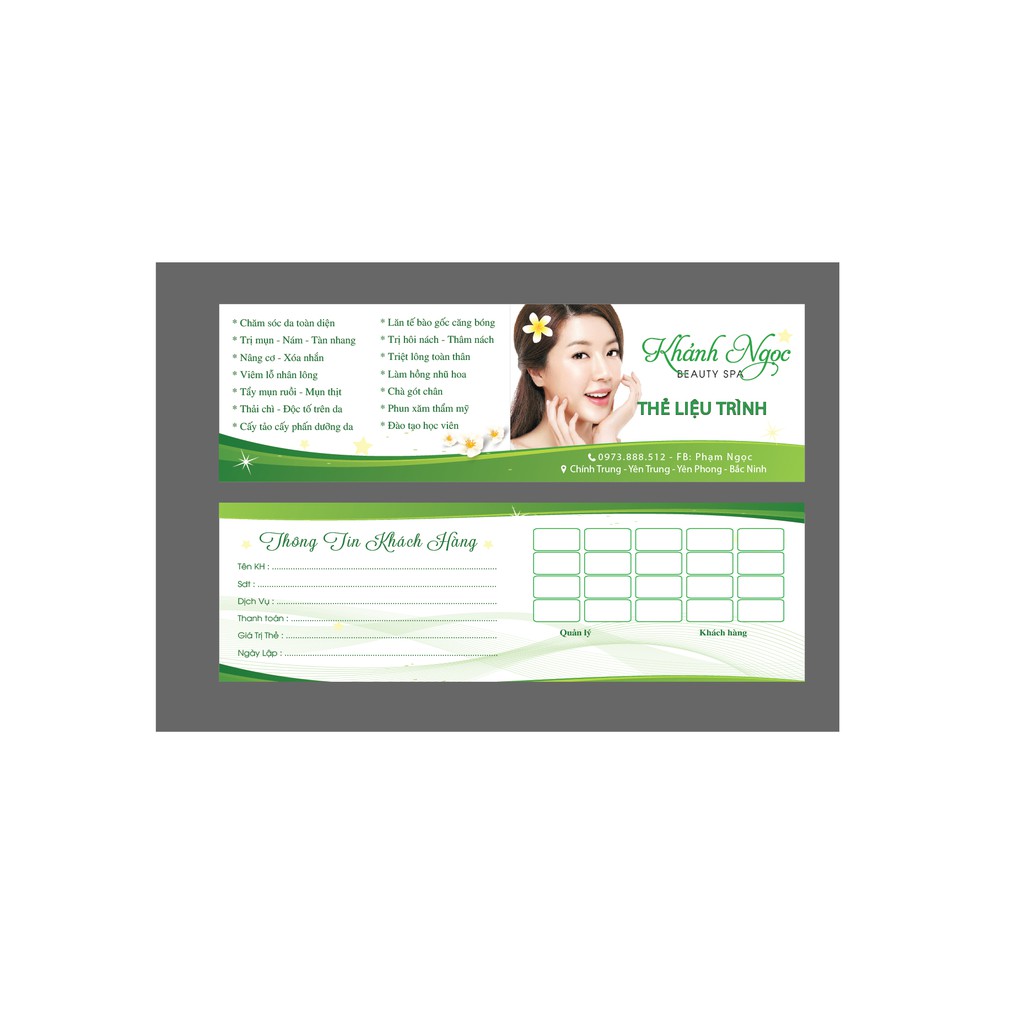 In thẻ liệu trình spa, Phiếu liệu trình spa giá gốc tại xưởng " THIẾT KẾ MIỄN PHÍ "