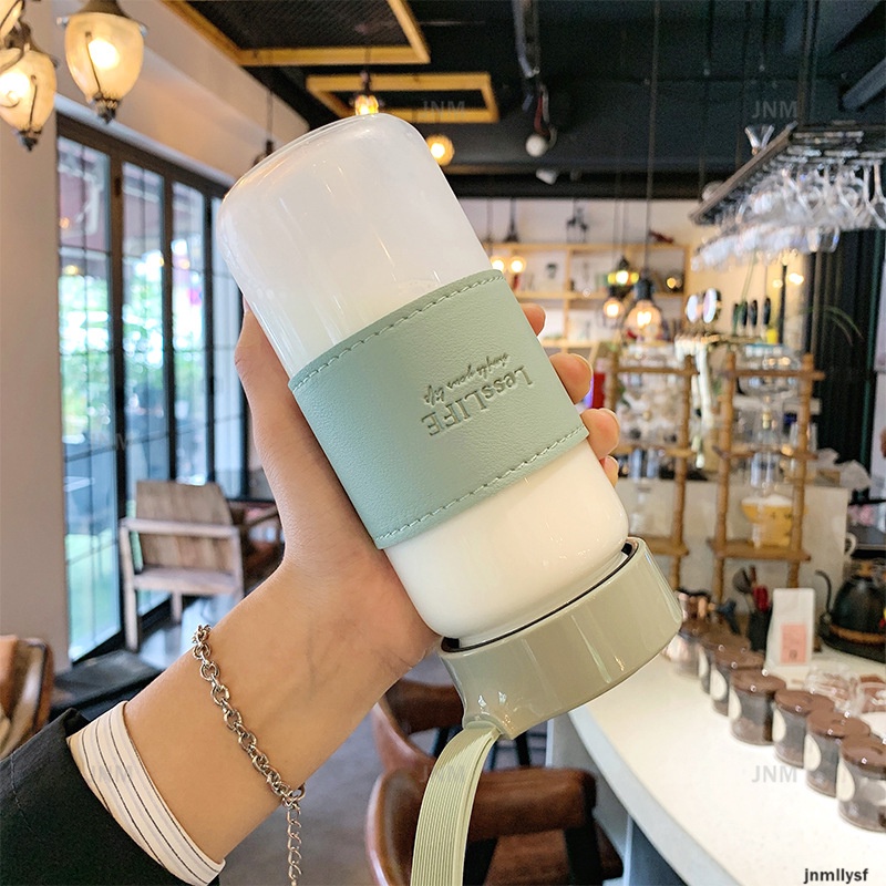 Ins Phong cách Bình nước Chai thủy tinh trong suốt Bình uống thể thao di động Trà cà phê sữa cốc thủy tinh