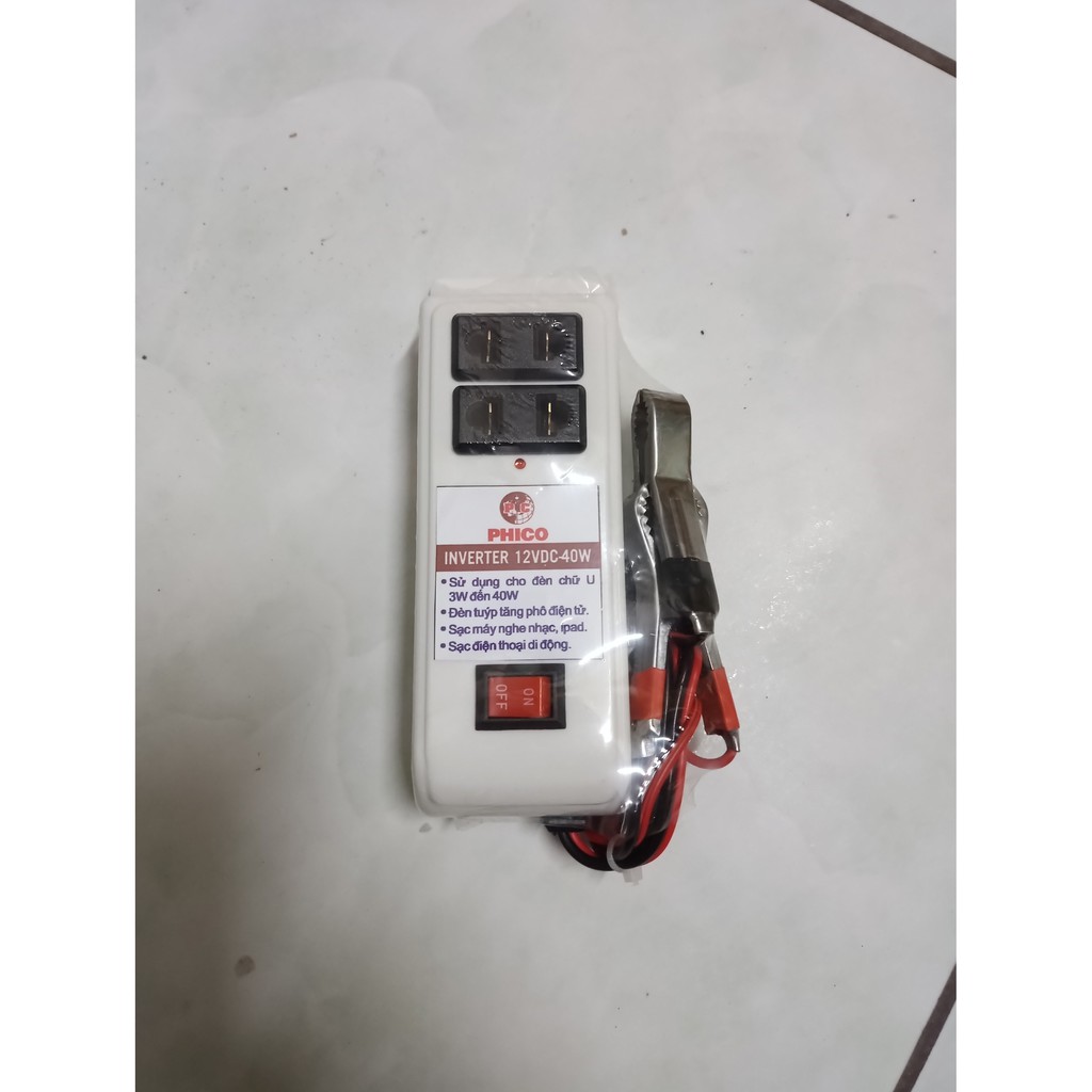 FOLLOW shop nhận ngay mã giảm giá 23k và các mã giảm giá cho nhiều sản phẩm khác. Bộ chuyển đổi điện bình 12v sang 220v với công suất 40W dùng sạc điện thoại, ipad, chạy đèn led, đèn bóng U, adapter wifi... Dùng được mọi loại bình từ bình xe máy, ô tô, bình khô, bình nước đều được. Bình lớn thì lâu hết điện khi sử dụng. Thông tin sản phẩm: Nguồn vào 12V Nguồn ra 220V Công suất 40W Sử dụng: Chỉ cần kẹp đúng màu của thiết bị vào bình: đen vào cọc âm -, đỏ vào cọc dương+ rồi mở công tắc là có thể sử dụng. Khi mở công tắc thì đèn led sáng là 2 ổ cắm đã có điện. Sàn phẩm bảo hành 1 tháng, 1 đổi 1 tong 3 ngày đầu nếu lỗi do sản phẩm. Giao hàng toàn quốc ChipBon Đồ Điện chuyên sạc bình ắc quy, inverter, delay tủ lạnh. Chân thành cảm ơn quý khách đã đọc thông tin sản phẩm của shop, shop luôn sẵn sàng tư vấn mọi vấn đề về sản phẩm và các sản phẩm liên quan khác. Chỉ cần nhắn chat với shop nhé! CHÚC QUÝ KHÁCH LUÔN VUI VẺ VÀ HẠNH PHÚC TONG CUỘC SỐNG. Thân ái! Liên hệ shop để nhận thêm thông tin sản phẩm và các sản phẩm liên quan. #inverter #chuyendien220 #sạc #điện #thoại #bình #ắc #quy #sacdienthoai #denled #đèn #led #quat-tich-dien #máy-lạnh-đứng
